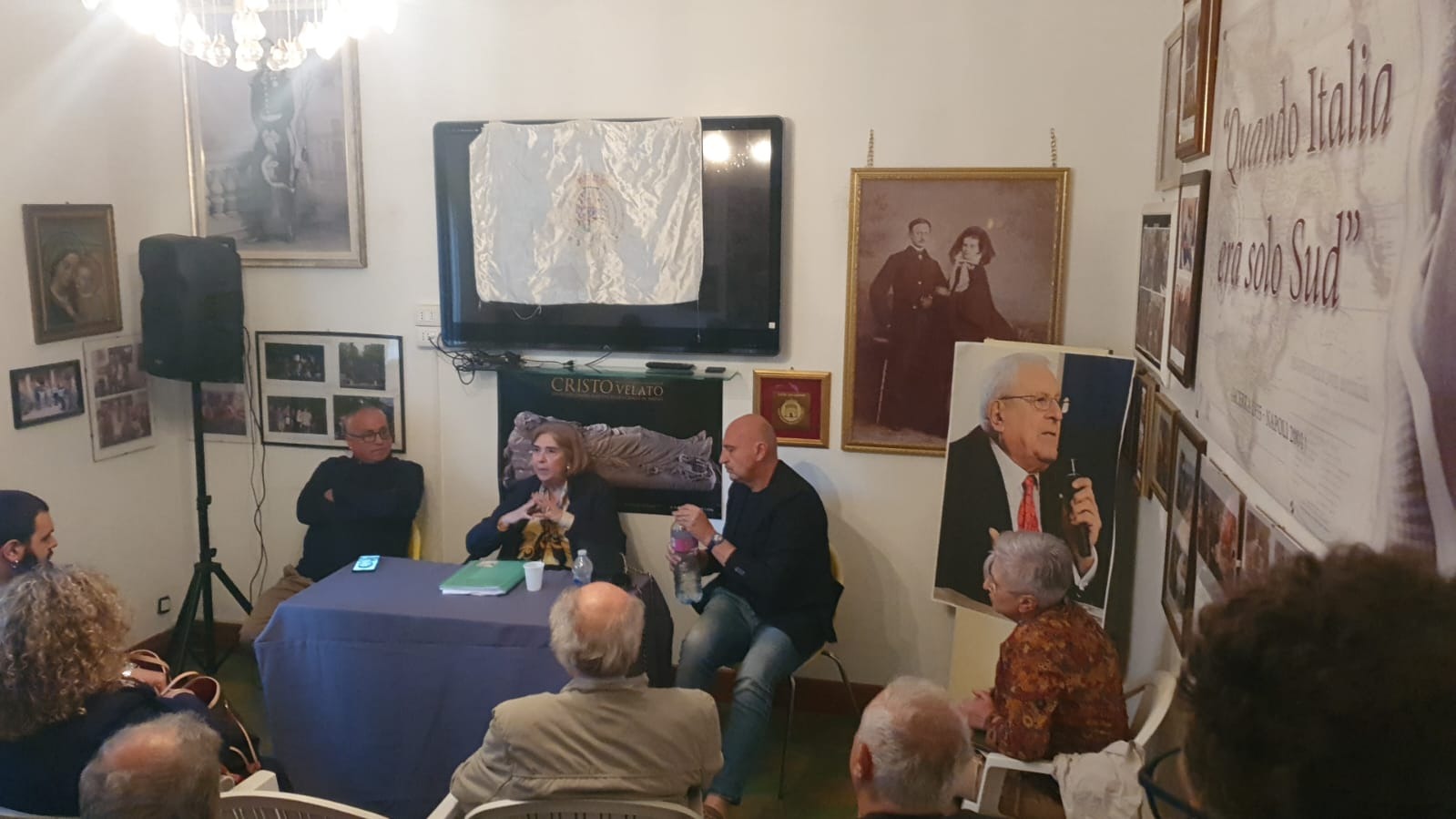 Infine, il racconto intenso e sentito della prof.ssa Cristalli ha commosso tutti i presenti. Con gli occhi lucidi, ci ha fatto rivivere quei giorni nefasti che portarono alla nascita della nuova nazione, ricordandoci che tutto ciò fu determinato dalla volontà degli Inglesi, dalla massoneria e dai tradimenti, con generali venduti al miglior offerente. Le conseguenze economiche e sociali di quei fatti si riflettono ancora oggi, basti pensare allo studio scientifico di criminologia, che prende in considerazione le teorie di Cesare Lombroso e quel "museo degli orrori" che ancora oggi fa mostra di sé a Torino.